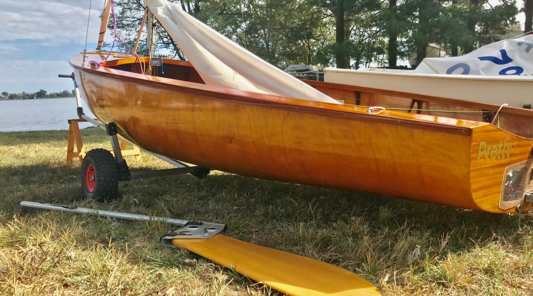 Eight Albacores registered, but only seven showed up for the first start of Saturday sailing. Barney Harris was on the way to the regatta on Saturday morning when, during a routine stop to fill up with “cheap diesel” and inspect his trailer, he noticed a cracked axle on his combi trailer. With Lee’s help, he left the boat on the side of the road, drove to Fishing Bay to pick up a trailer, drove back to his boat, put the boat on the new trailer, lashed the old trailer to his roof rack, and made it back to Fishing Bay just before we all came in. Lesson learned – check your trailer every time you travel and gas up – this story could have had a much different and unhappy ending!